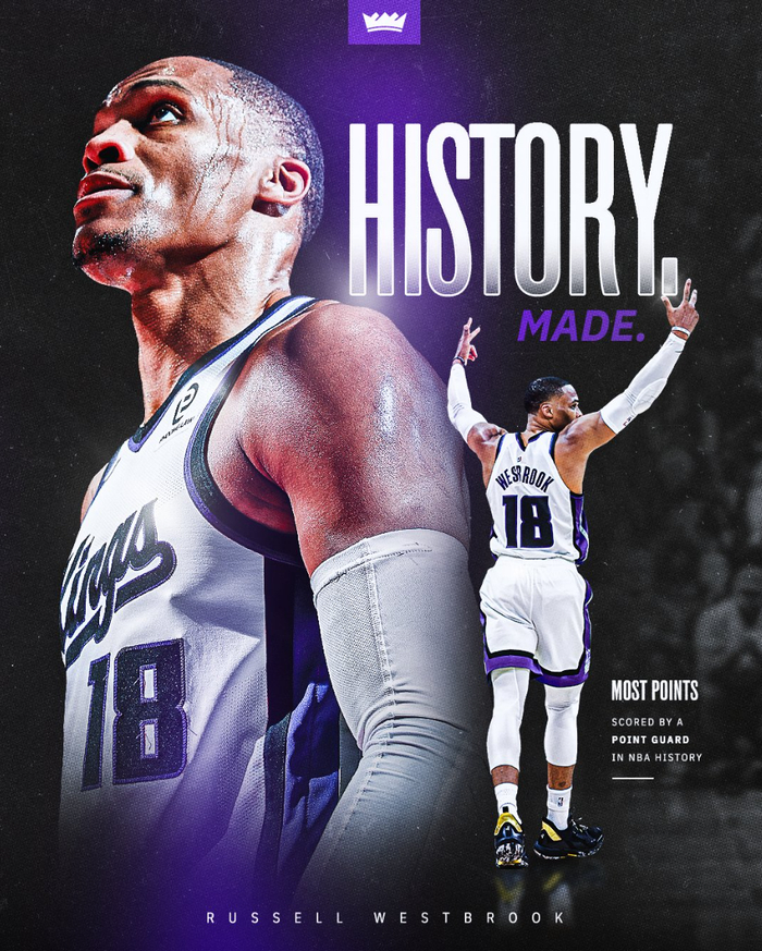 他的历史总得分超过26710分的大O升至历史第15位,他也正式成为NBA历史控卫得分王,在他前面的14人没有一个是PG。