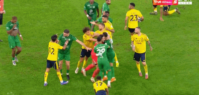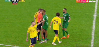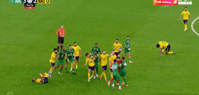 结果迅速引发了其他吉达国民球员上前指责,随后双方球员迅速围拢在一起。冲突中,吉达国民球员马拉希拽着菲利克斯的球衣,并且击打了菲利克斯的面部,从而吃到红牌罚下。
